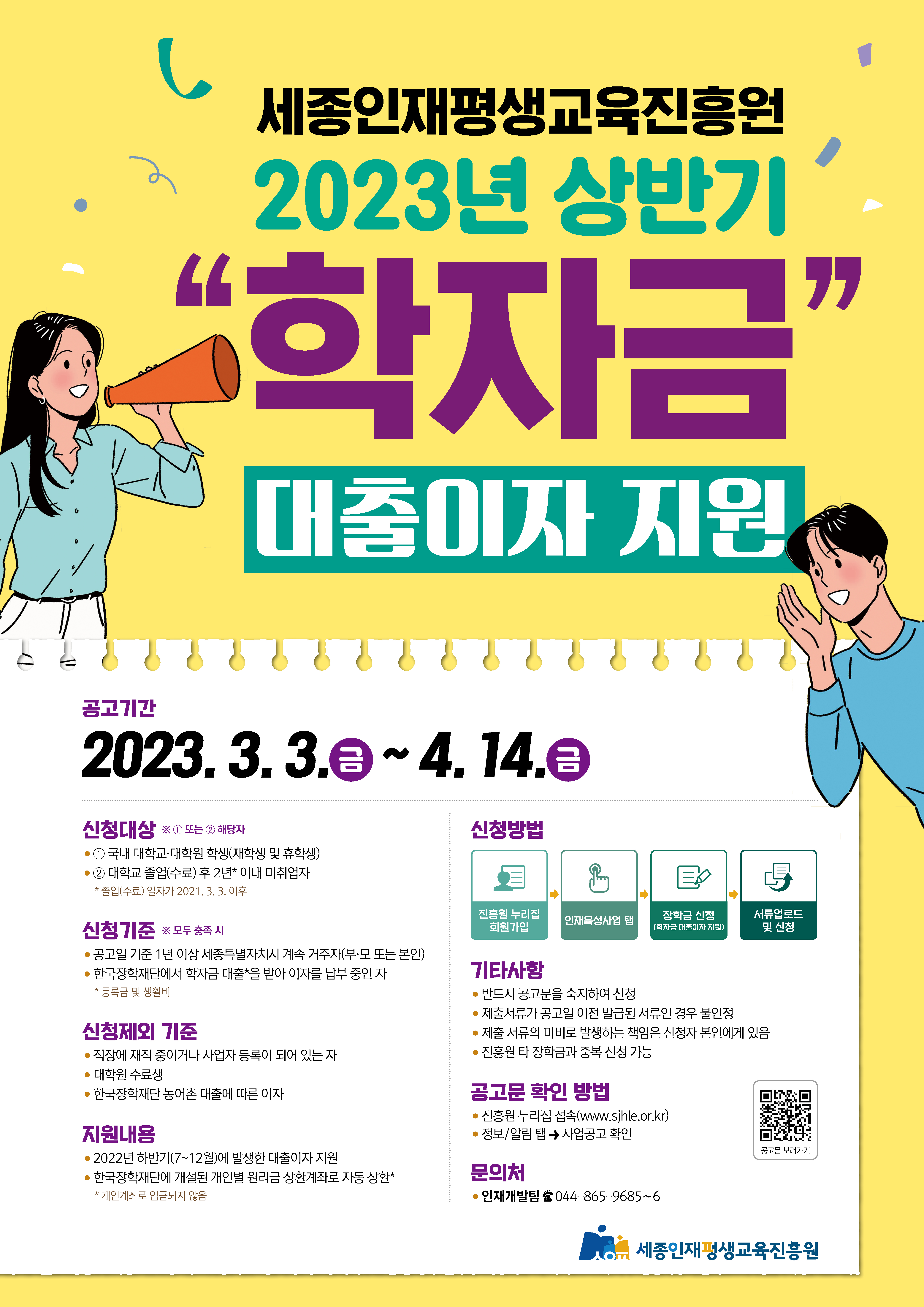학자금 대출로 인한 경제적 부담을 겪고 있는 세종시민(학생)에게 학자금 부담을 낮출 수 있도록 [2023년도 상반기 학자금 대출 이자 지원 계획]을 다음과 같이 공고합니다